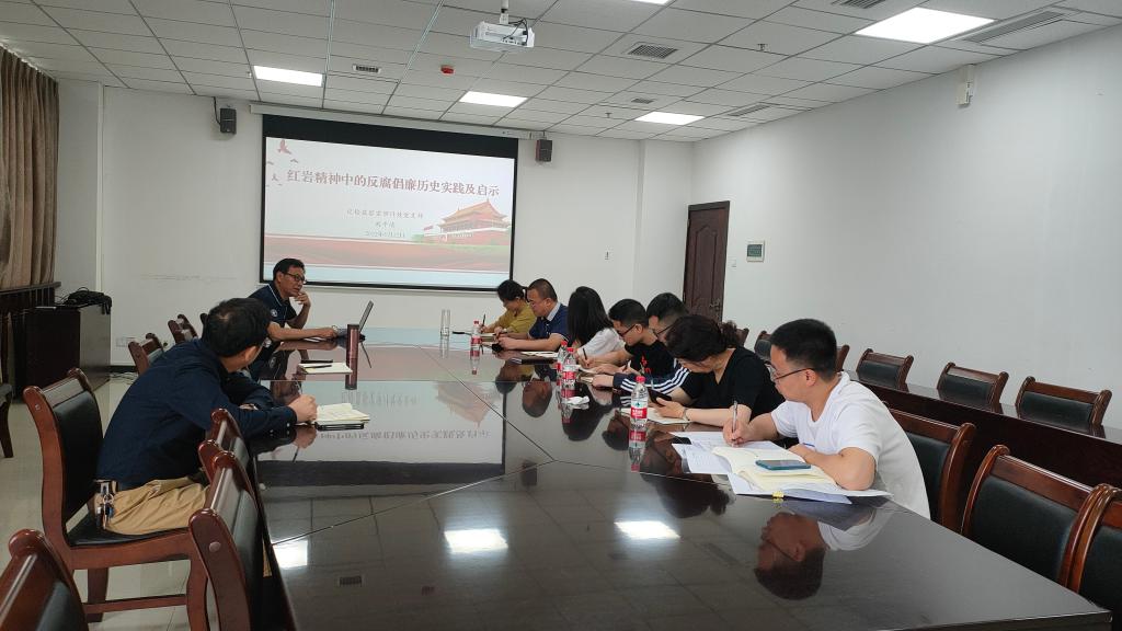 党支部书记刘平清同志以“红岩精神中的反腐倡廉历史实践与启示”为主题,从红岩精神的反腐倡廉特性、红岩精神中的反腐倡廉历史实践、红岩精神对新时代党风廉政建设和反腐败斗争的现实启示等三个方面,对全体党员讲了一次生动的专题教育党课。通过本次专题党课,使全体党员对红岩精神的内涵及红岩精神中的反腐倡廉历史实践有了更深刻的领悟和认识,大家表示要慎终如始继承和发扬党的优良传统和作风,努力践行共产党人的初心和使命,忠诚履职,勇于担当,为学校事业高质量发展作出自己不懈的努力。