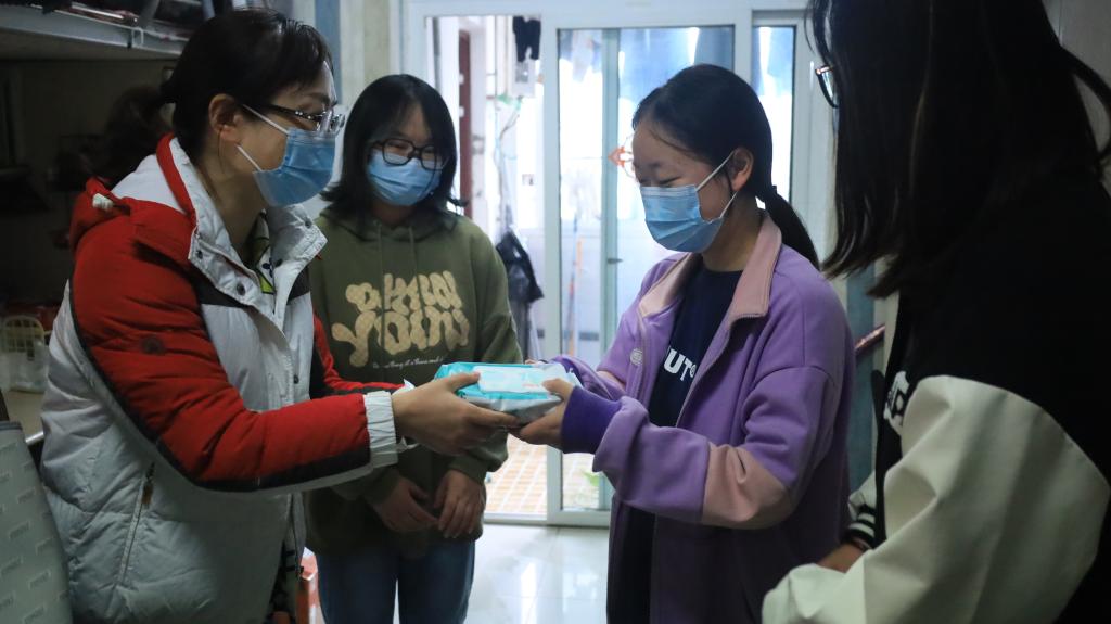 走访中,代远红还为同学们送上了口罩、消毒湿巾等防疫用品,感谢同学们对学校疫情防控工作的理解与支持。