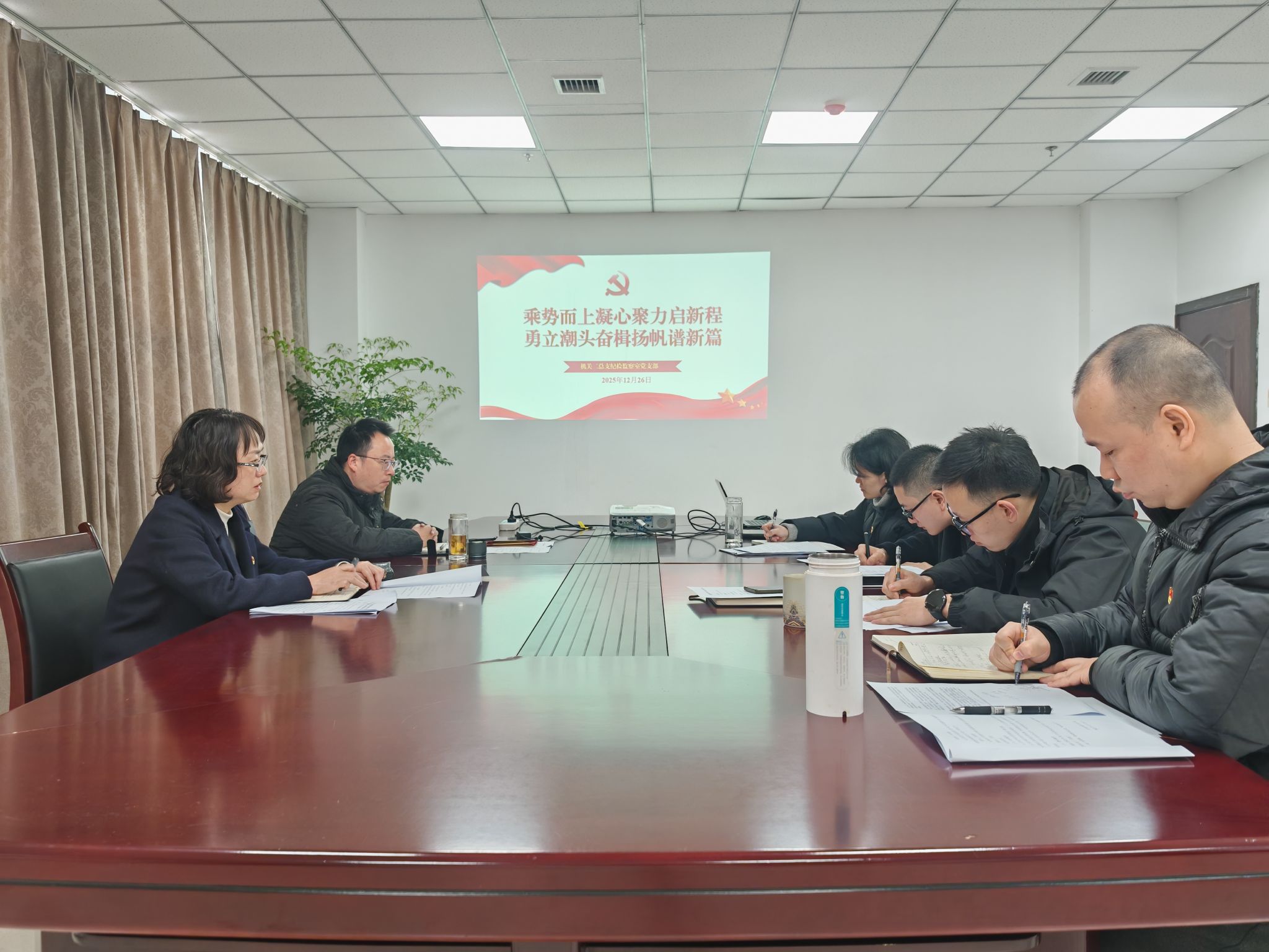 12月26日,纪检监察室党支部以“乘势而上凝心聚力启新程 勇立潮头奋楫扬帆谱新篇”为主题开展12月主题党日活动。党委常委、纪委书记、监察专员代远红同志以普通党员身份参加。会议由党支部书记张祥友同志主持。